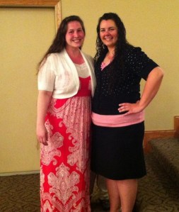 This isn’t the best pic of me, I was a little sunburned from the 7k the day before, but doesn’t my friend Kim look awesome??  He he.  I think I look uncomfortable so that’s why I’m not over the moon about this shot.  And my chest/face matches my dress a little too much.  LOL.  Oh and the feet you see between Kim and I would be Aiden deciding to hide while we were taking pics. Also, you can’t see it but even with my 4″ heels, my dress still skimmed the floor.  I’m thinking about 2″ off would be good to wear it with heels or flats this summer.  Just something to think about.
