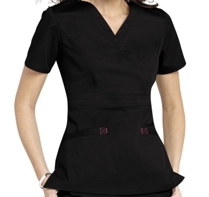Being a nurse means being limited in what I can wear to work (or at least in my case it does). I work for an office that requires scrubs in only a few select colors. I have 3 pairs that I try to mix and match to have different looks but sometimes it gets a little boring. One nice thing about my uniform is the ability to wear any shoes I want or any hair accessories to jazz up my day. I love bright headbands but otherwise trying to figure out what to wear is pretty simple. My newest uniform is black with a little bit of pink accent but the important part of this one was fit.